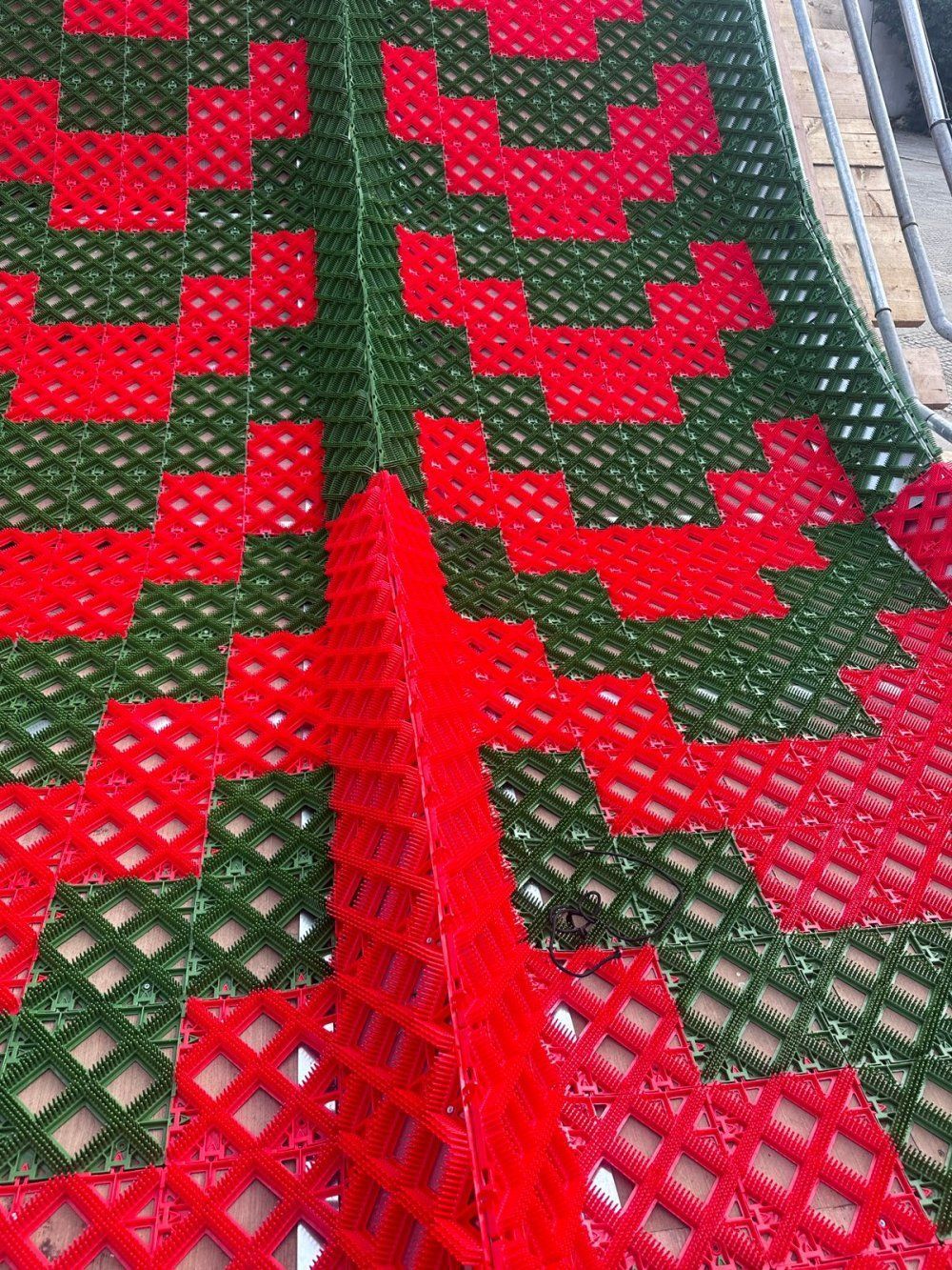 Für einen schnellen und reibungslosen Aufbau sowie eine sichere Nutzung kommen die Tubtrax-M2.1-Module für die Seitenbegrenzungen zum Einsatz. Diese Module aus rostfreiem Metall werden am Holzboden der Tubing-Bahn befestigt, und dazwischen werden die schnellen Tubtrax-Gleitmatten verlegt. Dies garantiert nicht nur einen schnellen Aufbau, sondern auch einen ebenso schnellen Abbau Anfang Januar. Alles wird auf Paletten verstaut und für das nächste Event gelagert.