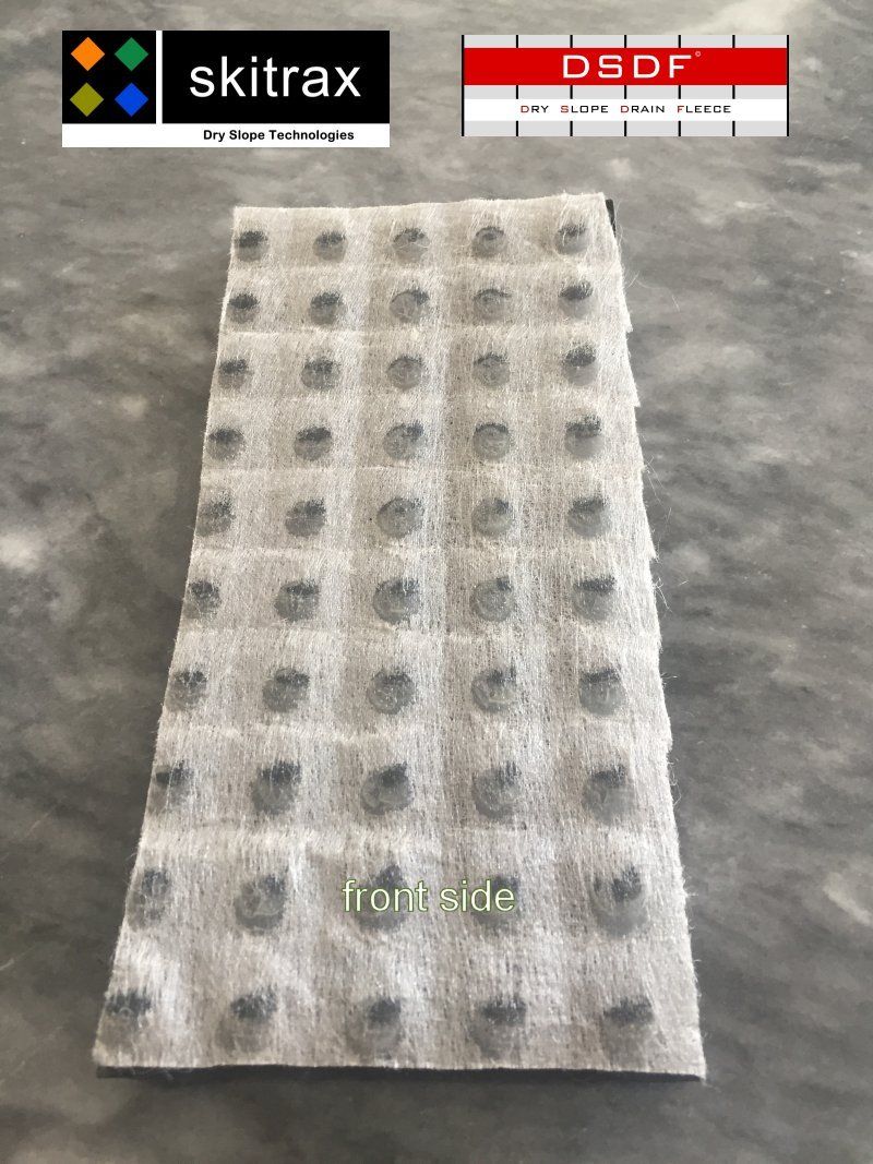 Für Tubing Anlagen und Mattenskigebiete ist ein wesentliches Problem der Abtransport von Regen- und Schmelzwasser. Unser Neuentwicklung “Dry Slope Drain Fleece” ist ein Hohlnoppen-Drainageelement und hat auf der Unterseite einen reibungserhöhenden Spinnsprühauftrag. Auf Erdstoffen und anderen Untergründen bleibt das Produkt auch in Böschungsbereichen ohne zusätzliche Befestigung liegen und sorgt durch kleine Kanäle für den Abtransport des Wassers. Es kann in Rollen zu max 55m Länge und 4,95m Breite geliefert werden. Zerschneidungen je nach Bedarf in der Breit ist möglich.