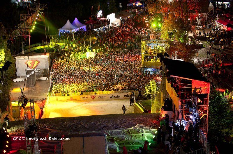 The new terrain layout proved its worth: The arena-shaped infrastructures of the four different sports disciplines, which are closely packed together, guarantee a witch's cauldron atmosphere and spectacle - all the more so at the cross-discipline show contest Crossover Session. Although the FMXers and mountain bikers could not start due to the wetness, this did not dampen the mood. Because freestyle.ch came up trumps with a sensation: As the world's only city big air, women were at the start with the men. And they flew into the hearts of the fans right from the start. Goosebumps! In the end, however, the ladies had to leave the throne of the crossover.champ to the men: Elias Ambühl convinced the audience in his retro costume, earned the most applause and was carried through the audience on a litter at the end.