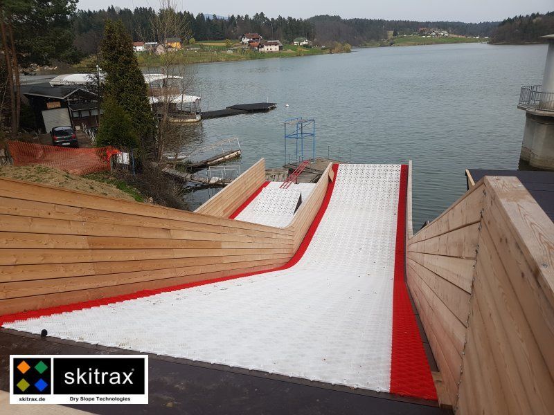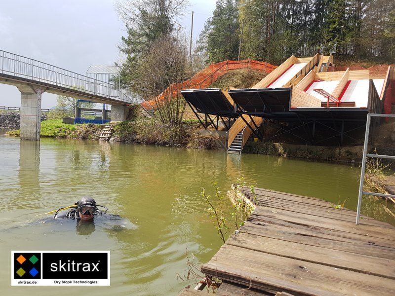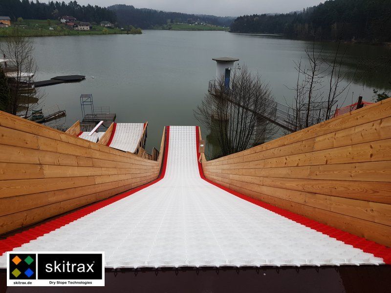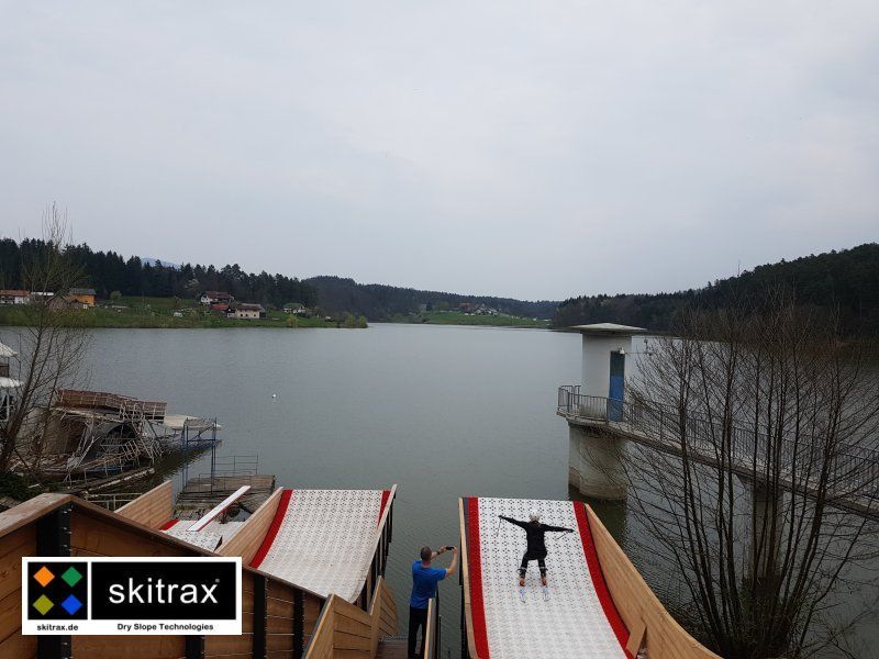 In the Slovenian town of Ceilje, the opening jump of the new freestyle water jump was held in summer 2019. The jumping hill was completely laid out with almost 200 m/2 WaterTrax mats.
