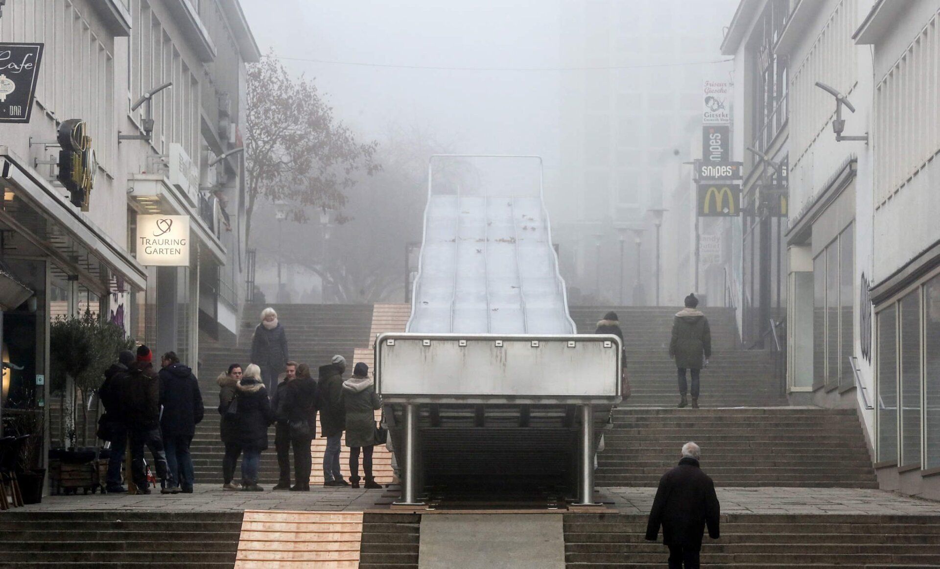 "I was the first at the finish line," exclaims six-year-old Emma as she slides down the fairytale slide on stepped road in Kassel on a plastic sled at midday on Thursday. She beams all over her face.