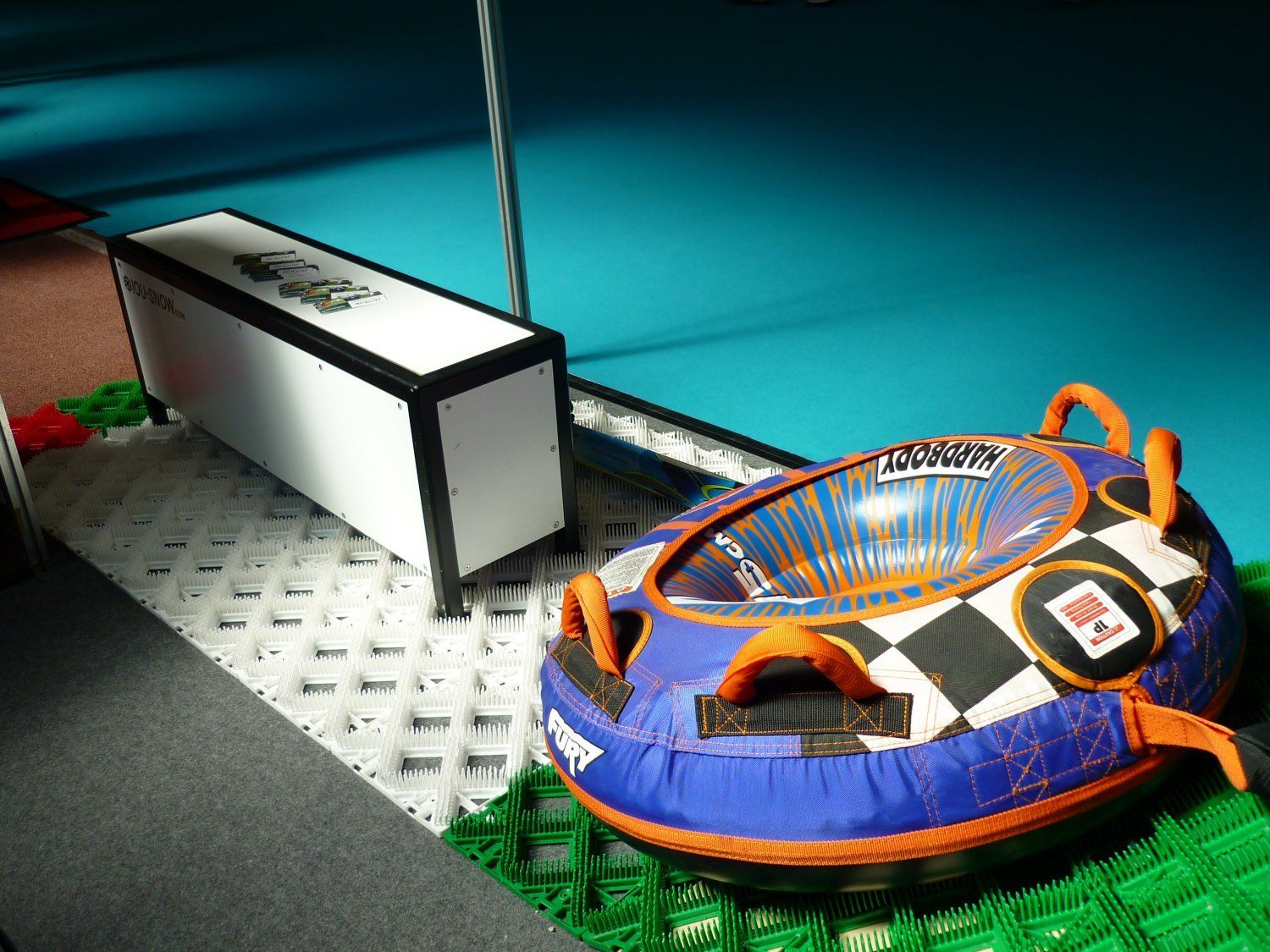 The expansion with new developments continues. At the world's largest trade fair for mountain lift equipment, we were able to present the new, fast Slopetrax SP mats. The harder mats are especially suitable for tubing tracks with low terrain inclination. But also for lift entrances, where a fast transport of skiers and boarders is necessary, these new mats can convince.