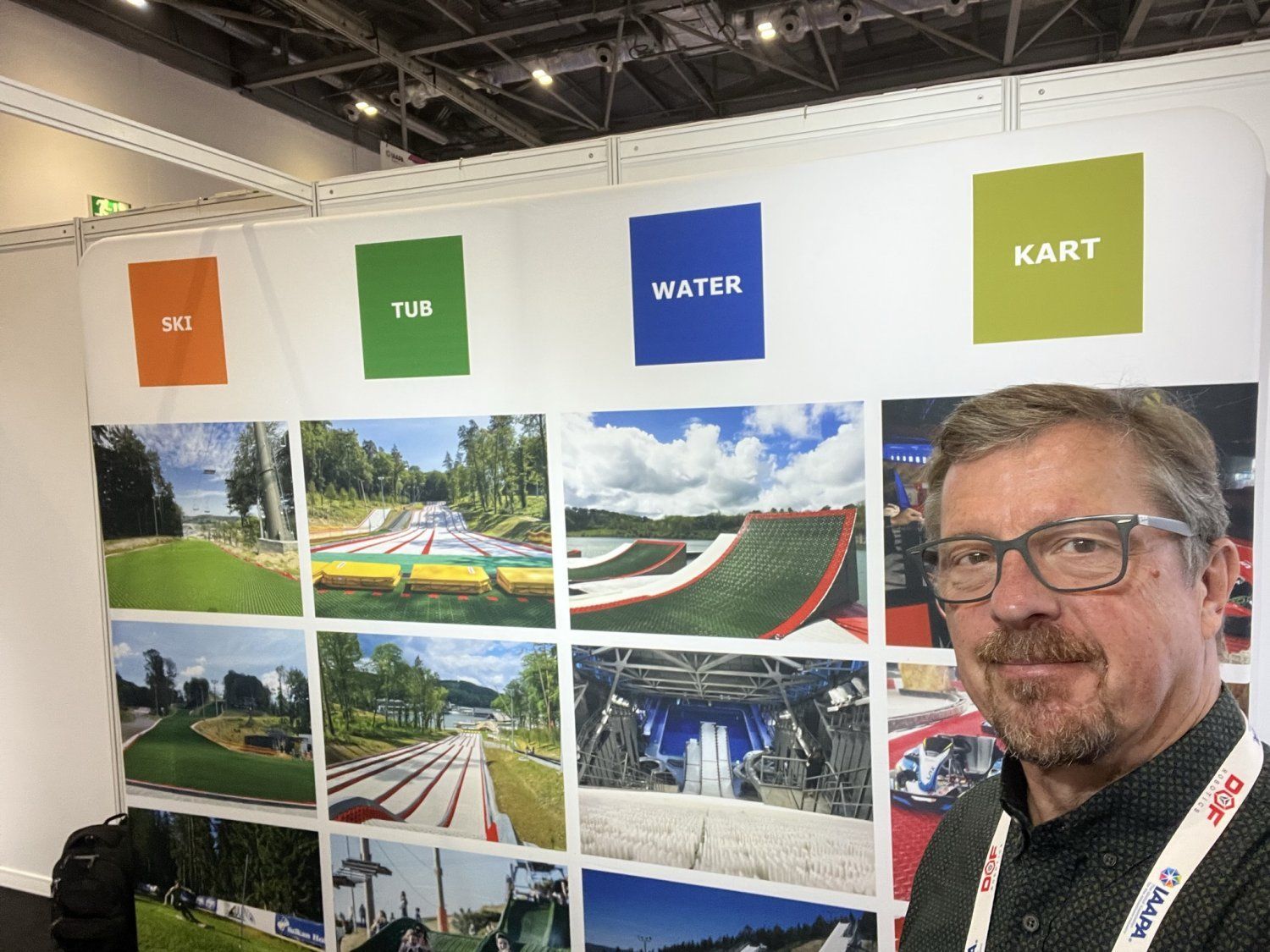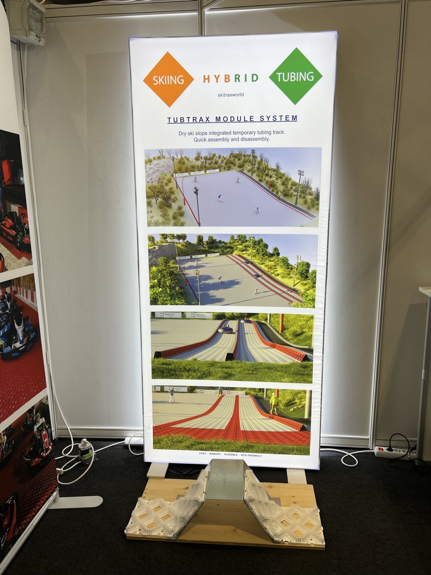 Viele alte und neue Kunden haben uns auf unserem 18 m2 großen Messestand besucht. Das Vereinigte Königreich ist das "Mutterland des Mattenskifahrens". Über 50 Mattenskigebiet werden auf der Insel in England, Schottland und Wales betrieben. Aus diesem Grund haben wir uns über die zahlreichen Besuche der Betreiber von Mattenskigebieten und Tubing Bahnen gefreut. Sehr überrascht waren die Besucher über unsere Neuheit: Hybride Skipiste & Tubing Bahn. Diese neuartige Kombination bietet für viele Betreiber eine gesuchte Alternative zum einfachen Betrieb von Mattenskigebieten. Durch die flexible Nutzung von Skipiste und temporärer Tubing Bahn werden neue Zielgruppen angesprochen.