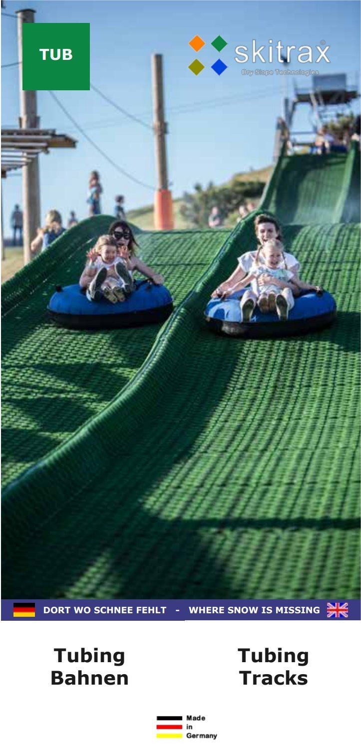 Here, the individual mats can be easily plugged together - and also pulled apart again. The outstanding feature is the 2mm clearance between the individual mats. Plastic changes at different temperatures. It expands when it is warm and contracts when it is cold. In systems that have a continuous connection, when it gets warm the plastic has no room to expand and gives in to the upward pressure - it throws waves. Because of the 2mm space on all 4 sides, the plastic in our system has room to expand. With our system, large mat ski slopes, water jumps, go-kart tracks and tubing tracks can be fixed evenly and cleanly to the ground.