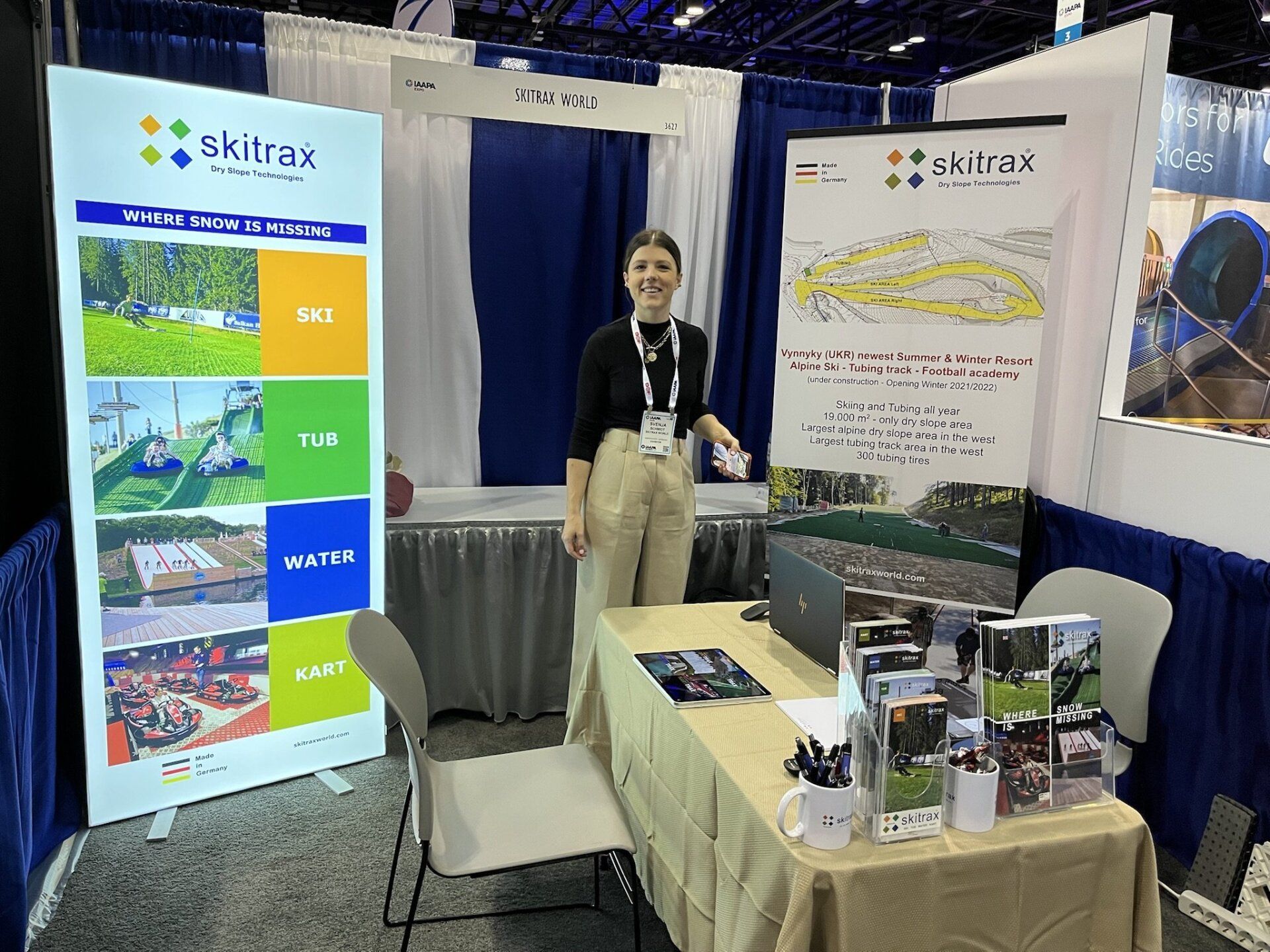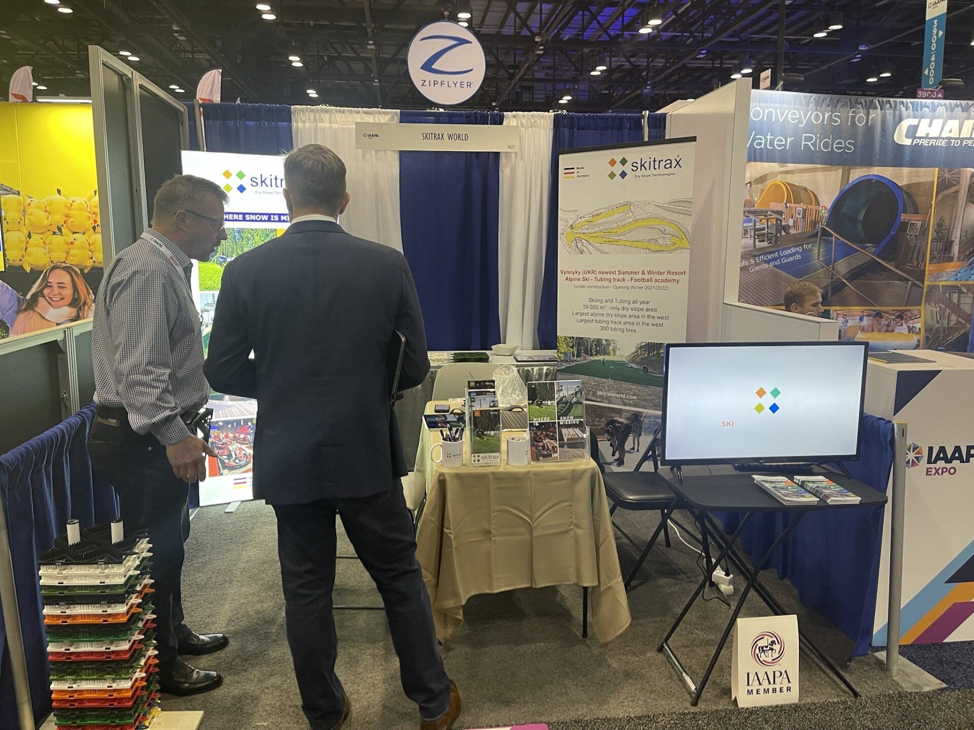 We are very satisfied with the first 4-day trade show (2021 Nov. 16-19.) appearance of Skitrax World in the USA. Only 800 exhibitor numbers showed up for the first IAAPA show in Orlando (Florida) since 2019. About 50% less exhibitors than before the Corona Pandemic. The late opening of US air traffic at the beginning of November had kept many exhibitors from Europe and Asia from participating in the show.