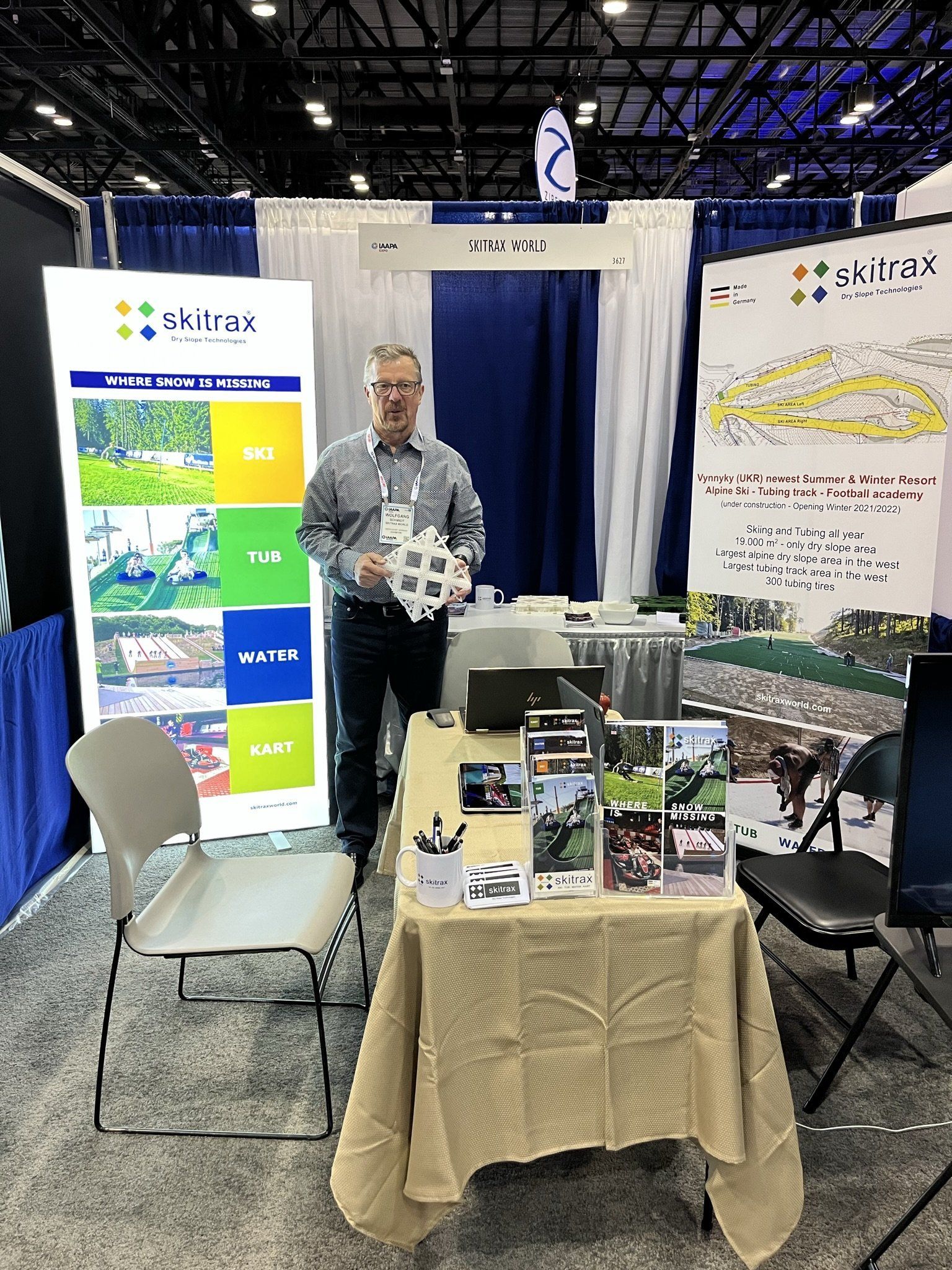 The number of visitors was quite small, as many customers from Central and South America still shy away from the flight to the USA. But the quality of the inquiries and discussions at the booth were excellent. Already at the booth we were able to plan some new projects for tubing tracks, water jumps and ice karting facilities for summer 2022.