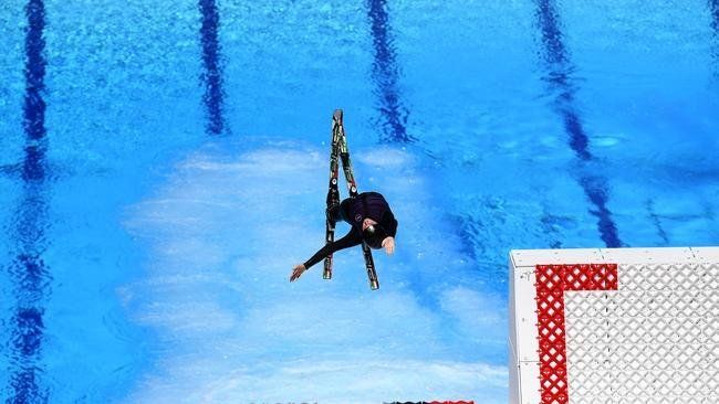 Nur ein paar Sekunden dauert es um auf der ca. 35m langen Strecken eine Geschwindigkeit von ca. 70 km/h zu erreichen. Der Kicker bringt die Springerin bis auf 17m in die Höhe, wo nun genug Zeit bleibt, die akrobatischen Mehrfach-Salti, -Schrauben und -Korks anzuwenden. Gelandet wird in einem großen Wasserbecken. Kurz vor der Landung wird eine Pumpenanlage am Boden des Wasserbeckens aktiviert, die intensiv Sauerstoff nach oben bläst, damit der Sportler weich auf dem Wasser landen kann.
