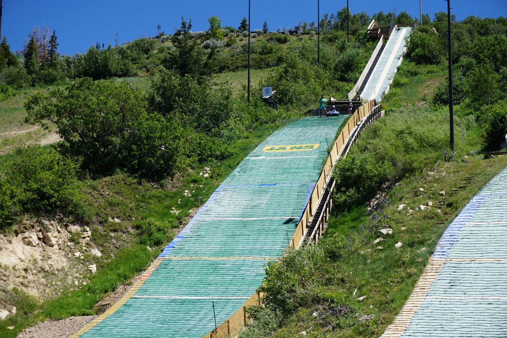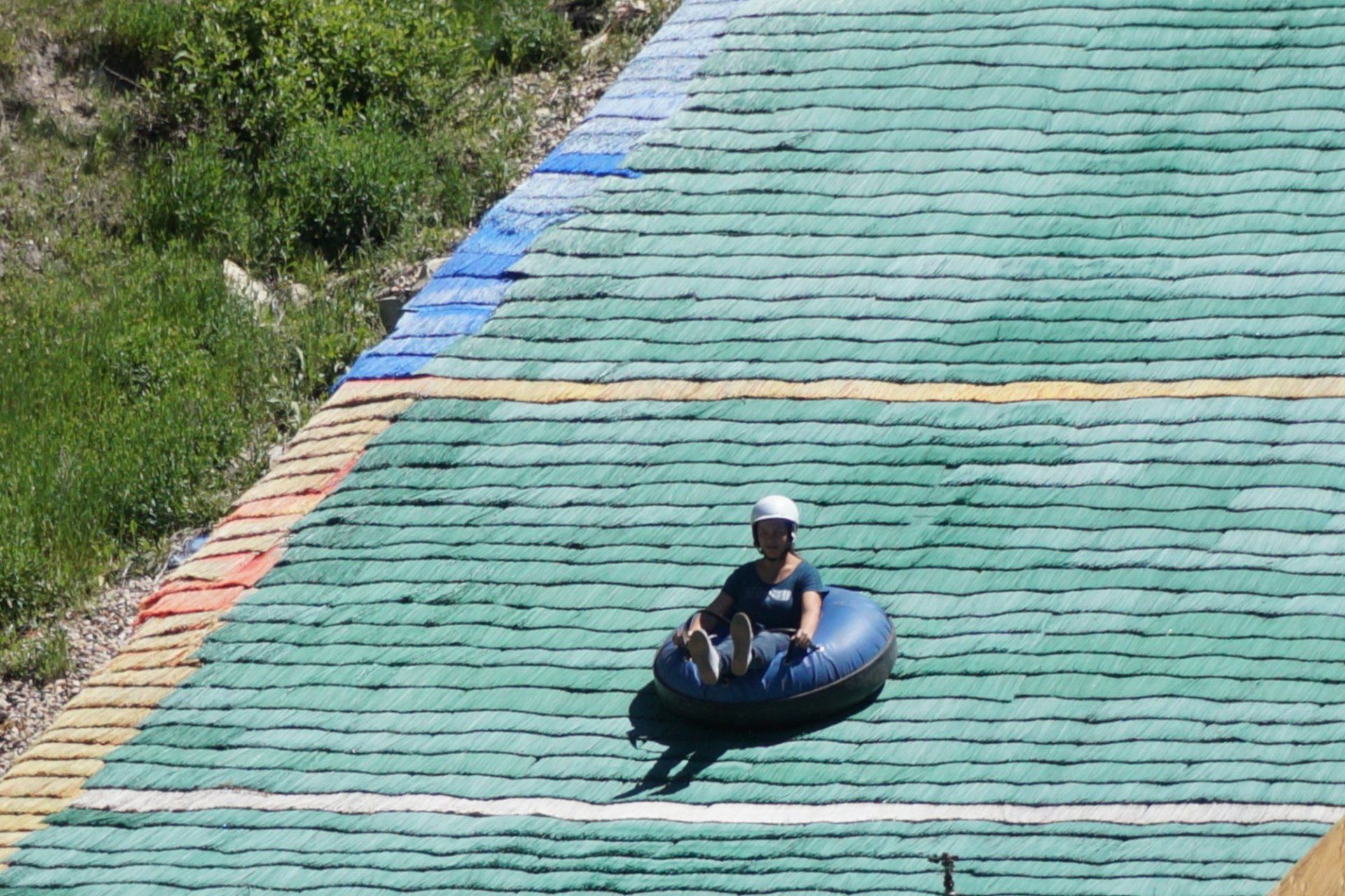 It is quite something to slide down a ski jump with a tubing tire. Here in Park City (USA), people are pulled up to the jump table with the tubing tire. Helmet on, hold on and off you go at high speed down the mats of the jump area into the valley.