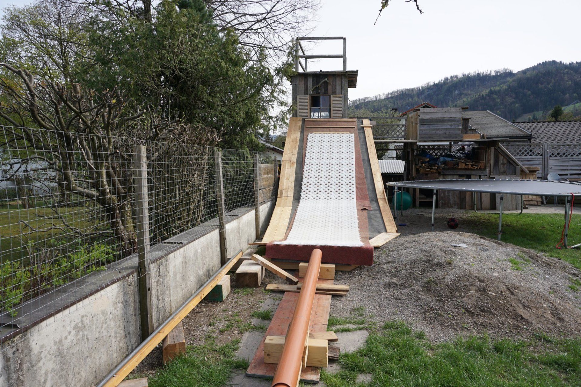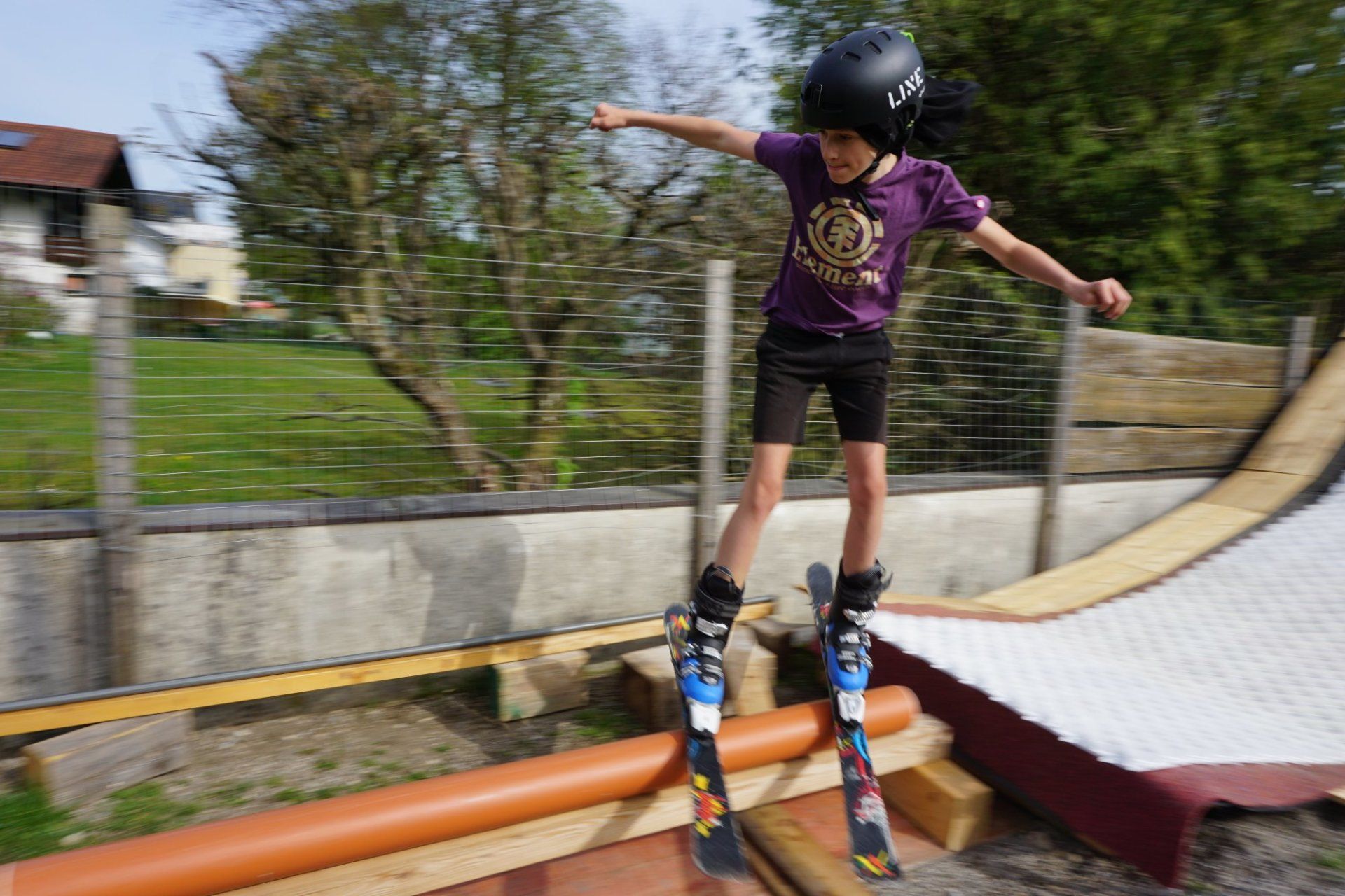 It doesn't always have to be a big big air hill. Some have a home office, others a home backyard. The hopeful talents from Oberaudorf train in the morning on the obstacles. Often 10-30 square meters our Slopetrax sliding mats are enough to equip an own park functionally.