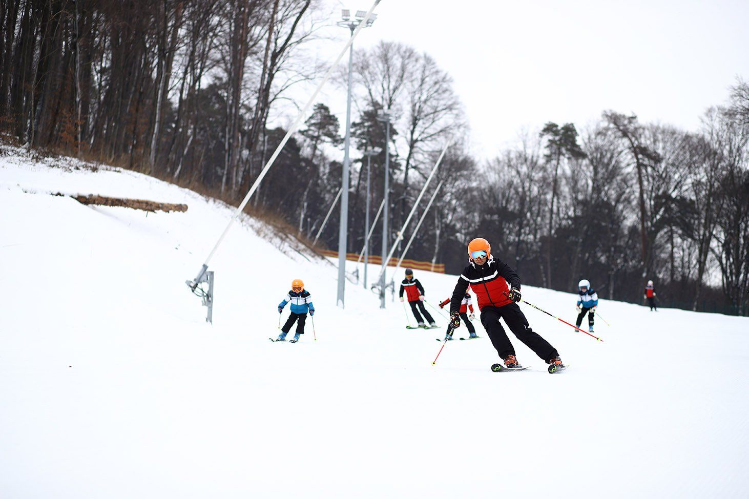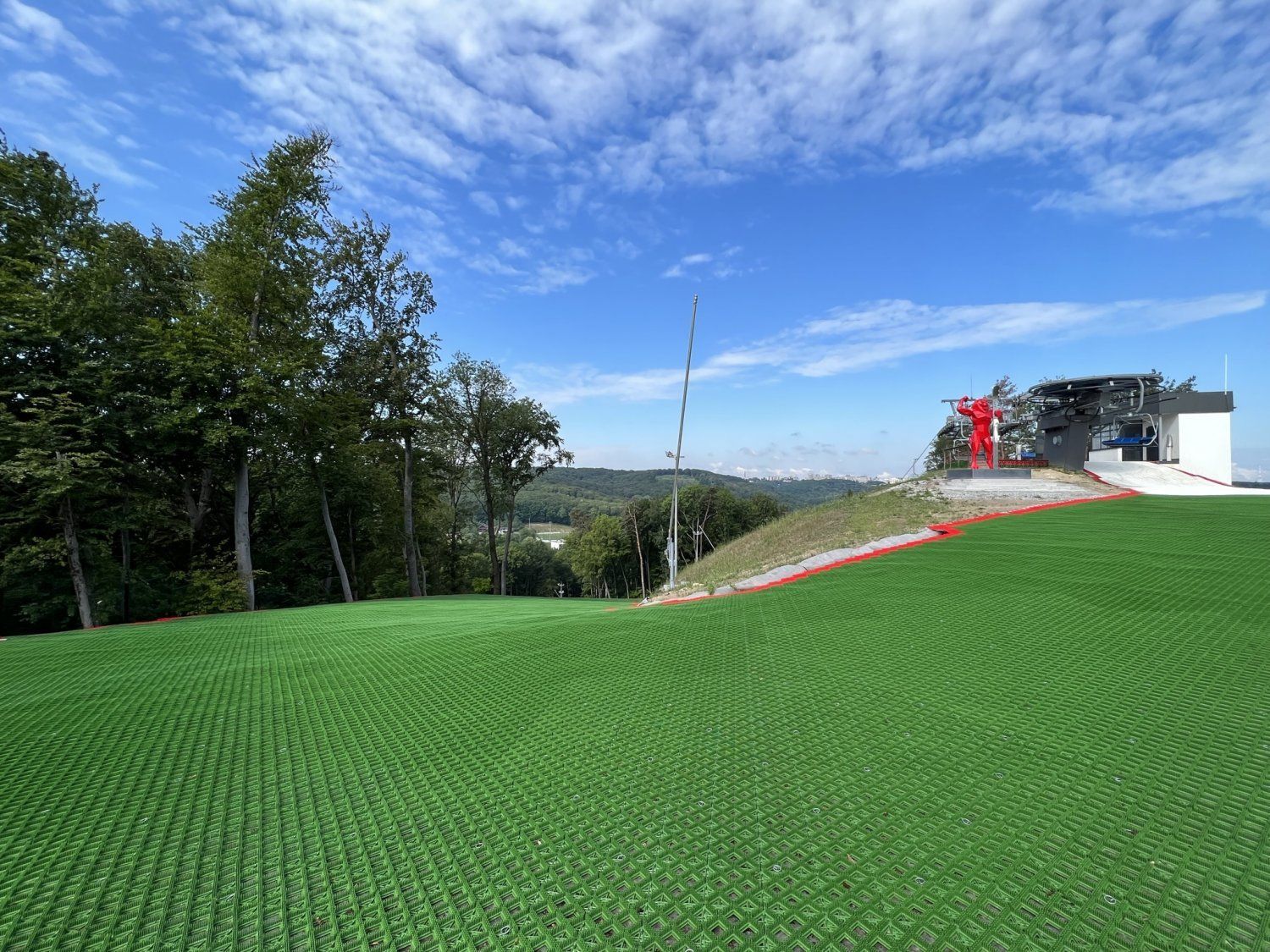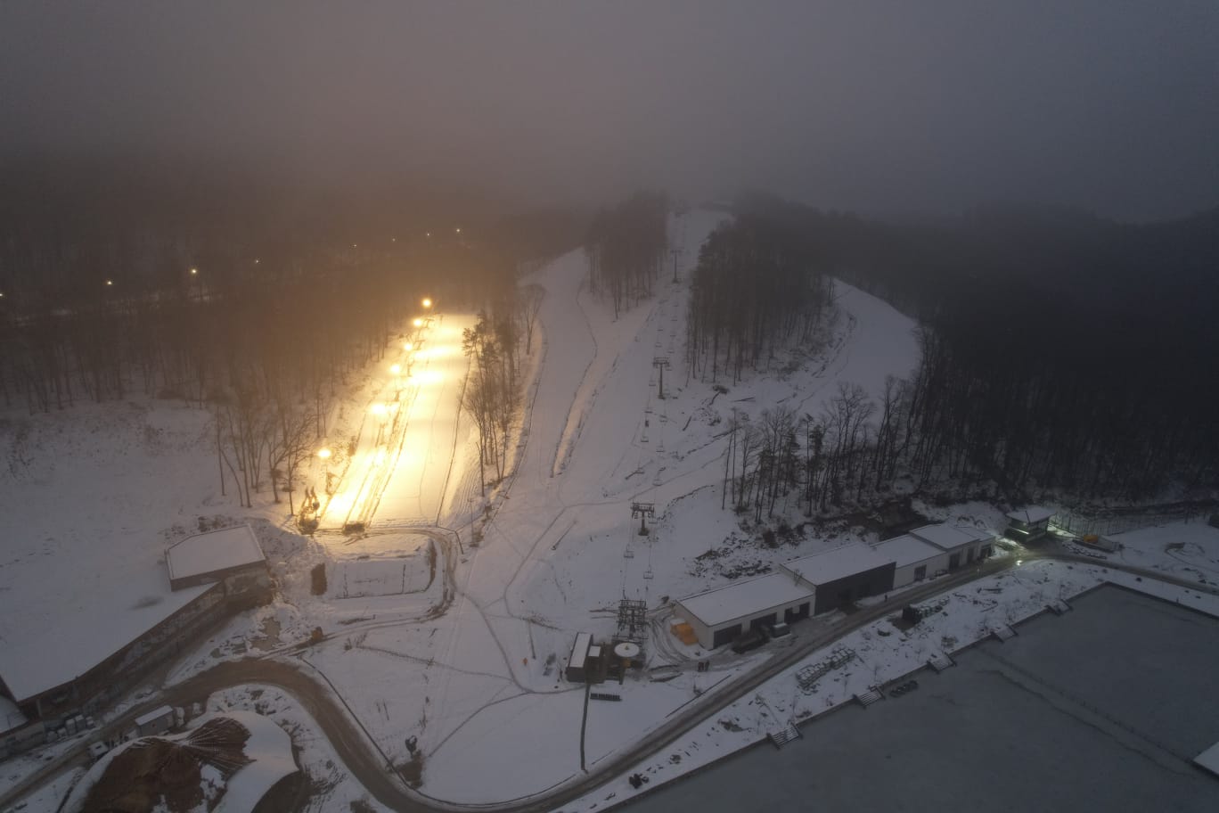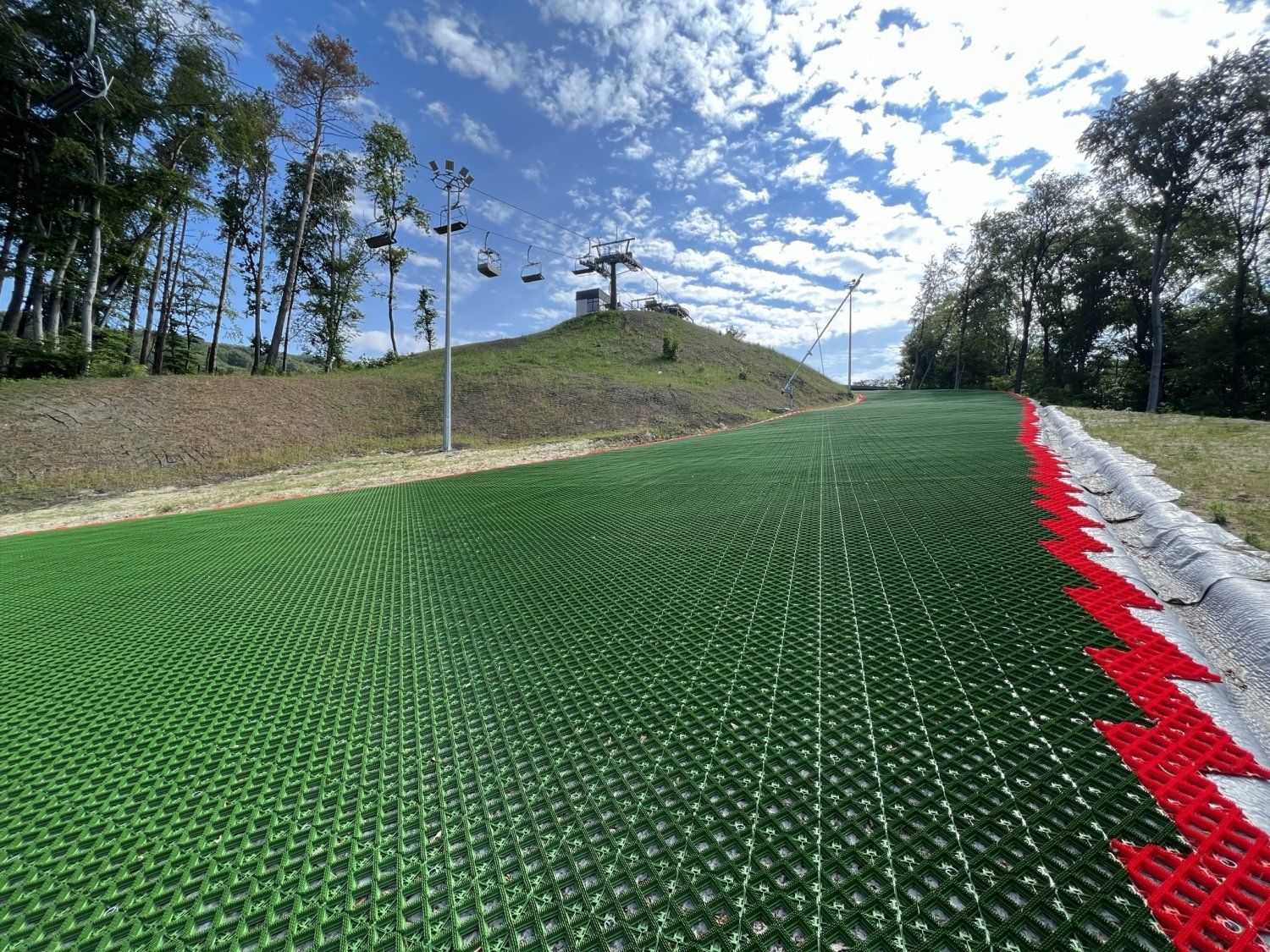 Daneben ist der Einstieg in ein Skigebiet mit Winter- und Sommerbetrieb. Zwei Pisten mit Slopetrax Kunststoffmatten führen jeweils mit einer Länge von ca. 460 m und Pistenbreite von ca. 20m die Skifahrer und Snowboarder runter zum Lifteinstieg am See. Dort wartet ein moderner 4er Sessellift zur Beförderung zurück auf die Bergspitze.