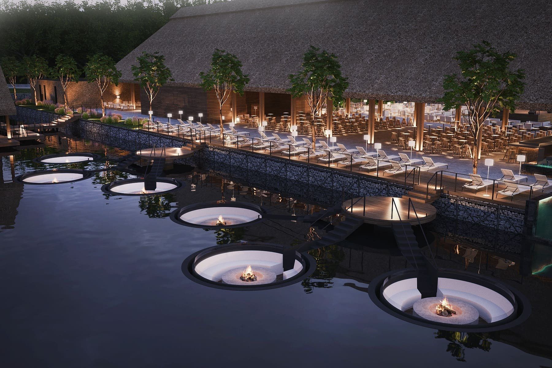 Rund um einen künstlich angelegten See entstand ein modernes 5 Sterne Luxus Hotel mit 6 (!) Restaurants, Event und Konferenzhallen, viele kleinere Räumen für Meetings, ein Wasserpark, Insel mit Strand, Schwimmbäder mit großer SPA & Sauna Landschaft und einem Amphitheater.