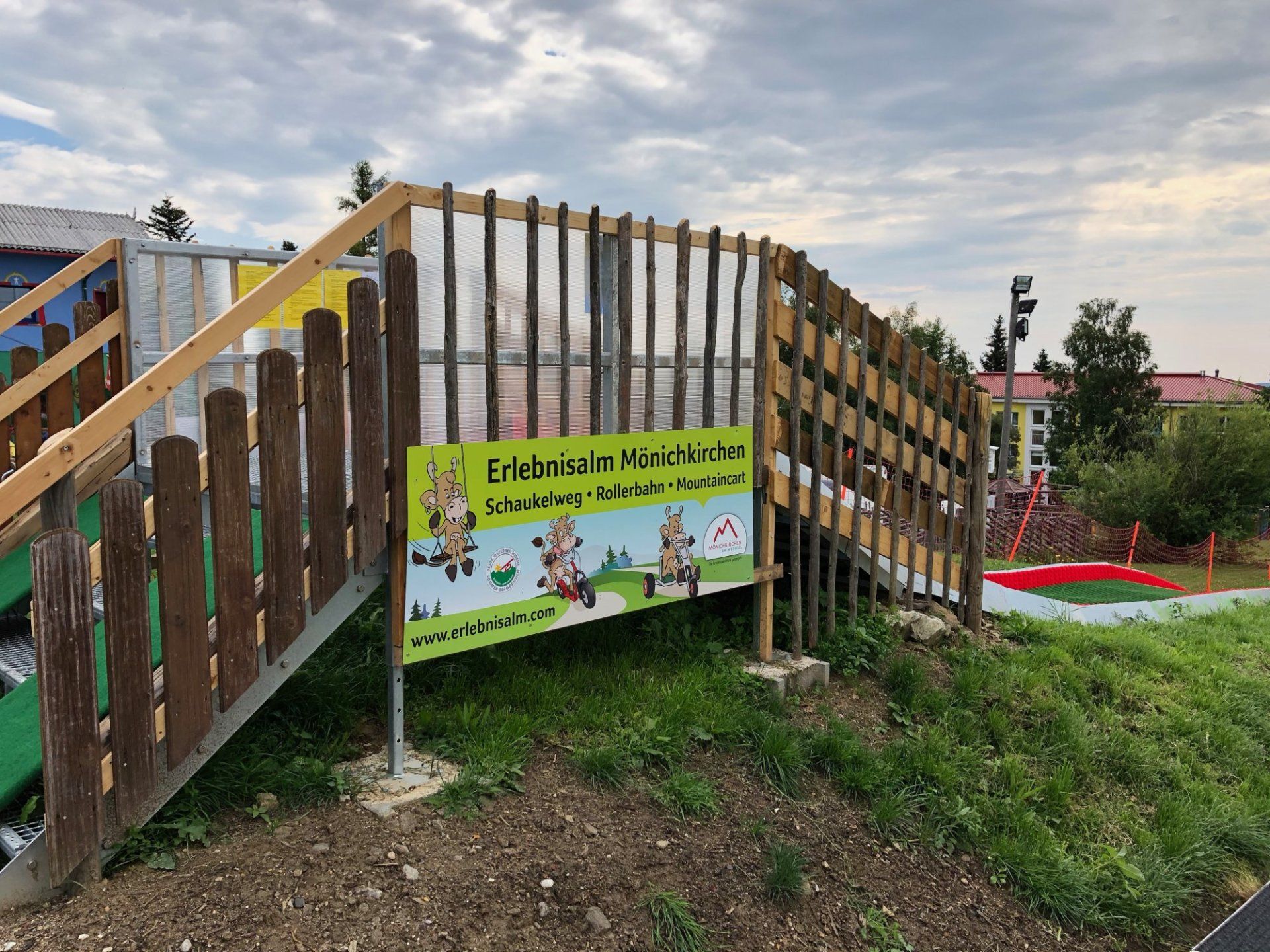 In Mönichkirchen (Österreich)wird eine rasante 80m lange Tubing Bahn betrieben. Die Anlage wurde in Zusammenarbeit mit MND (Innsbruck) erbaut. MND lieferte dazu ein neues, modernes Förderband. Mit deren Hilfe, können die Tuber schnell und bequem wieder zum Start befördert werden.