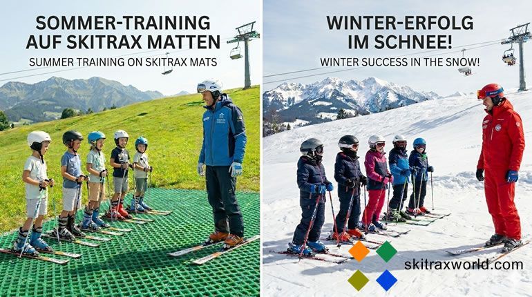Mit unseren Skitrax-Matten besteht eine Alternative zum Skifahren auf Schnee. Es soll kein Ersatz für Schneeskigebiete sein. Mattenskipisten werden verlegt, weil zu wenig oder gar kein Schnee vorhanden ist, um einen übersichtlichen Skibetrieb zu gewährleisten. Dazu hinterlassen die Matten in den vegetationsfreien Monaten (Oktober/November – März/April) keinen Schaden an der genutzten Rasenfläche!