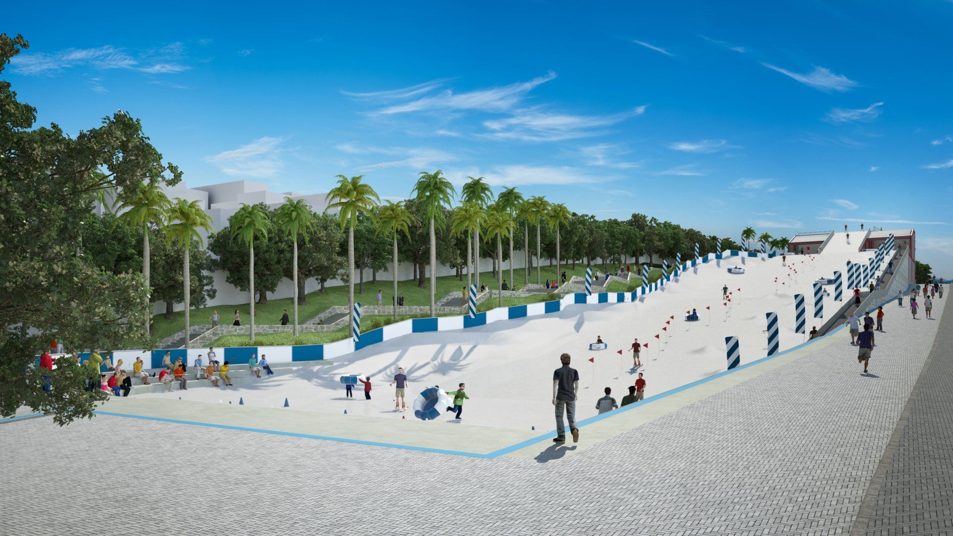 Below is a video about the possibilities of designing a leisure center with mat skiing, Tpracticing lanes, Children's ski school and one Ice karting track for go-karts: