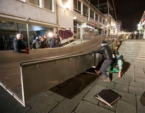 "I was the first at the finish line," exclaims six-year-old Emma as she slides down the fairytale slide on stepped road in Kassel on a plastic sled at midday on Thursday. She beams all over her face.