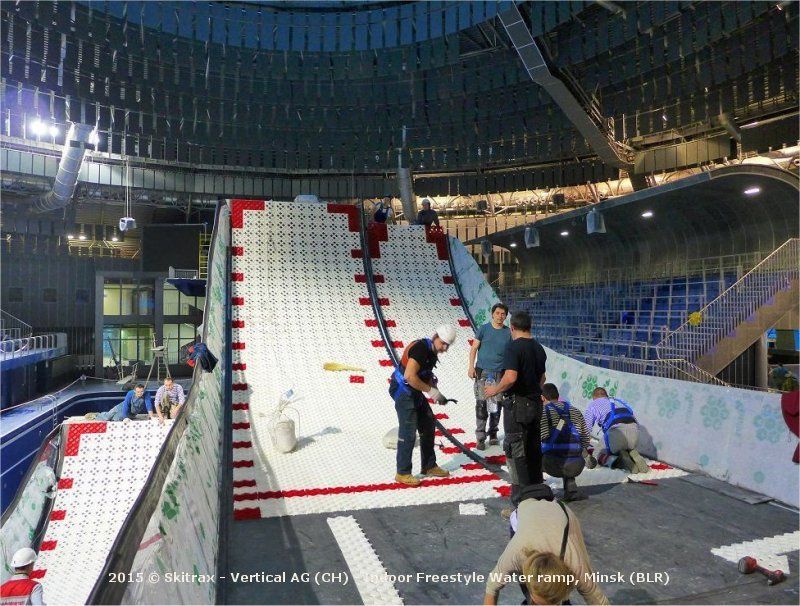 Damit auch unabhängig vom Wetter das ganze Jahr trainiert werden kann, wurde im weißrussischen Minsk die größte Indoor Wasserschanze der Welt eröffnet. Fast 1000 m/2 wurden hier WaterTrax