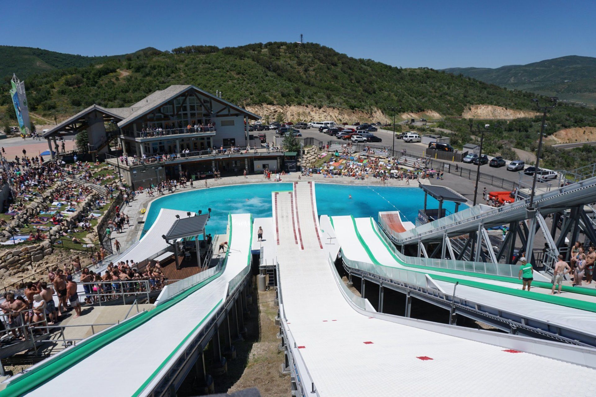 Mit einem kompletten Umbau wurde im letzten Sommer die größte Freestyle Wasserschanze der Welt in Park City (USA) eröffnet. Das Multimillionen $ Projekt ist wirklich ein „Objekt der Begierde“ geworden. Mit 8 unterschiedlichen Kickern ist dieses Olympia Trainingszentrum als Trainingsanlage für alle Freestyle Disziplinen (Ski, Snowboard, Areals, Buckelpiste, Slopestyle) geeignet. Weiterhin setzt der Betreiber auf die Nutzung der Watertrax Gleitmatten für die Anlage.