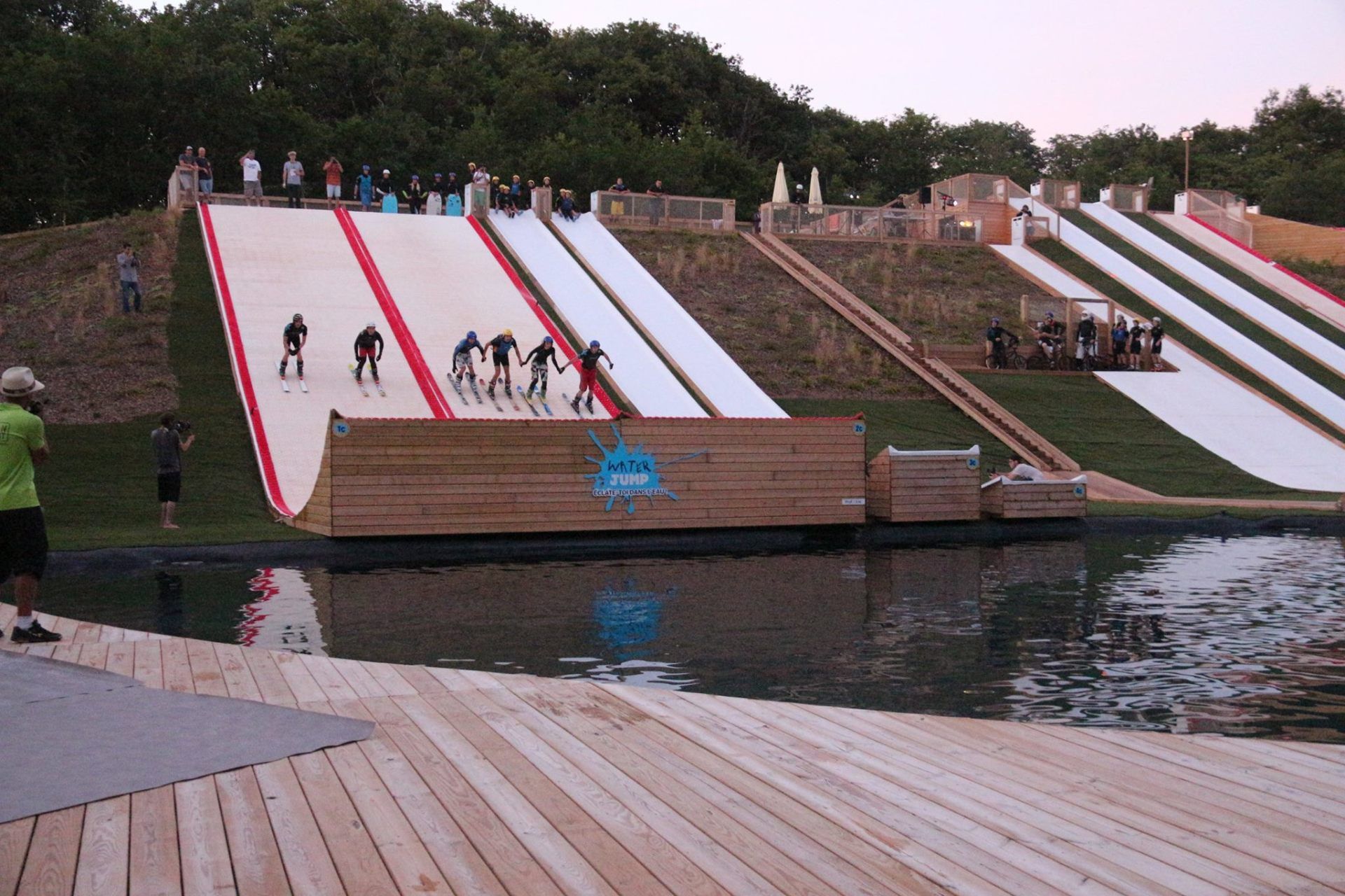 Fie pe lacuri mici din apropierea orașelor, fie pe bazine construite artificial - salturile de apă sunt mega in. Centru de antrenament optim pentru freestylerii alpini. Pe lângă schiori sau boarderi, săriturile pot fi construite și pentru motocicliști, skateboarderi sau plimbări rapide cu anvelope cu tuburi. Suntem cel mai important furnizor mondial de covorașe de alunecare pentru mega salturi de apă freestyle: până la aproximativ 35 m înălțime, 37 m lungime și aproximativ 80 km/h viteza de apropiere de kicker-ul de 60 de grade. Se atinge aproape 20 m înălțimea aerului. Le livrăm Watertrax