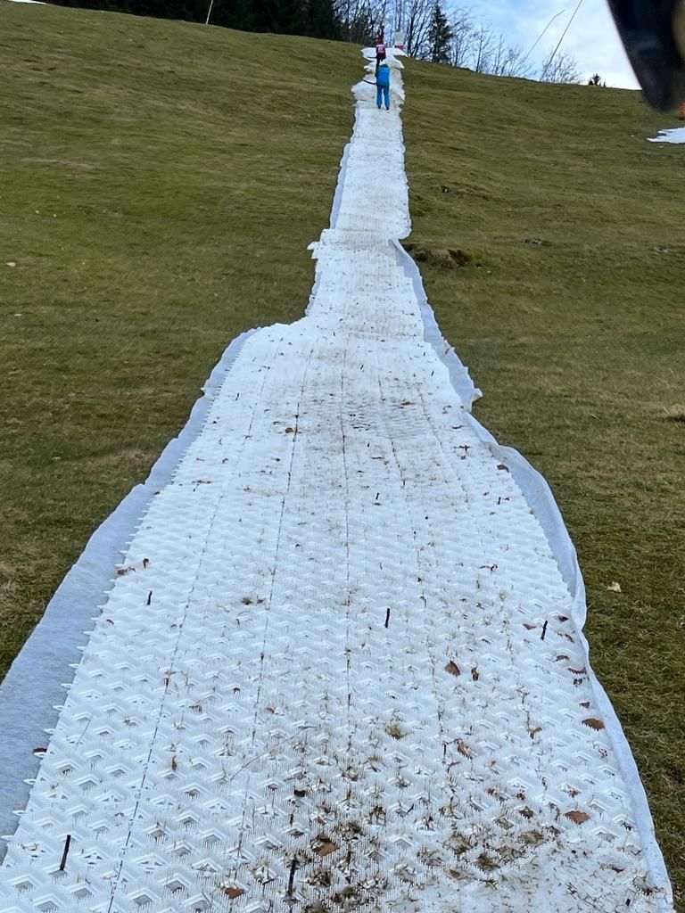 (aus HDPE Kunststoff) halten den Schnee in der Liftspur signifikant zusammen und sorgen dafür, dass er viel langsamer schmilzt. Selbst bei Schneeschmelze durch hohe Temperaturen können Skifahrer und Snowboarder auf den Matten weiter zum Liftausstieg gelangen. Das Beispiel des Skigebiets Ebenalb in der Schweiz zeigt, dass ohne die Gleitmatten der Skibetrieb schon seit Wochen nicht mehr möglich wäre. Dank der Matten können sogar Skirennen an den Wochenenden durchgeführt werden, während andere Skigebiete bereits das Saisonende verkünden mussten.