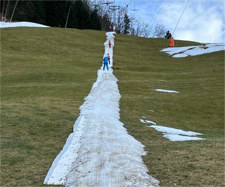 Viele Skigebiete mussten den Liftbetrieb aufgrund von Schneemangel einstellen, obwohl auf den beschneiten Seiten des Lifts noch genug Schnee zum Skifahren vorhanden war. Der Schnee in der Liftspur war jedoch geschmolzen, was den Betrieb unmöglich machte. Clevere Skigebiete haben dieses Problem gelöst, indem sie vor dem ersten Schneefall die Liftspur mit Lifttrax SP Gleitmatten ausgelegt haben. Diese Matten werden auf einem Vlies verlegt und mit Erdnägeln am Boden befestigt. Im Frühjahr können sie schnell abgebaut und auf Paletten verstaut werden.