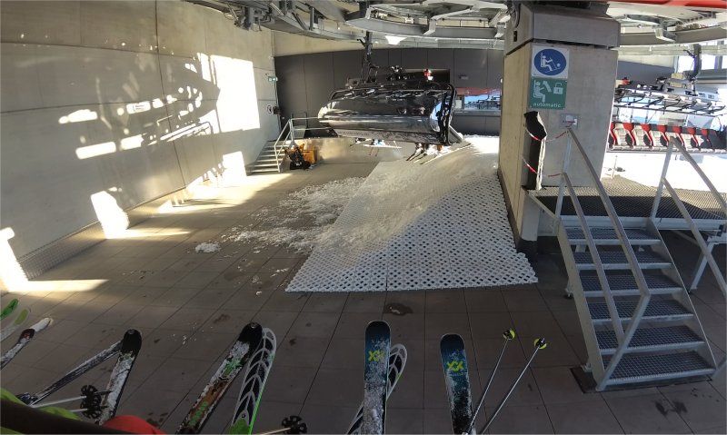 Many lift exits only use a wooden floor and rely on there being enough snow. However, when thaw sets in and the painstakingly shovelled snow melts away or a strong foehn wind blows the snow away and the wooden ramp completely ices up, skiers and snowboarders run the risk of slipping safely off the chairlift and injuring themselves. What's more, there are usually small stones and other dirt on the wooden floor. This is not good for the expensive skis and snowboards, which are then damaged on the surface side. This is not only a comfort problem, but can also lead to considerable costs for skiers and snowboarders.