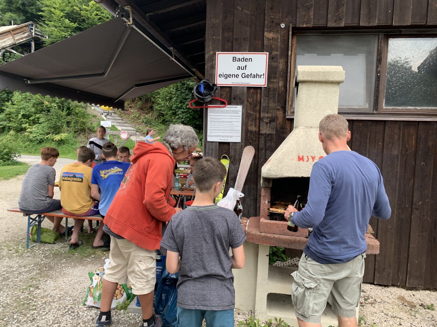 Every Saturday from 3 p.m. from May to September there is public training under the direction of ex-freestyler Thomas Brandlhuber. Young jumpers from Bavaria and Tyrol in particular are regulars at the hill. The family atmosphere at the ski jump is particularly appreciated. In good (but also bad) weather, there is a barbecue at the ramp after training. The parents or guardians of the young jumpers often sit together in comfort for a long time while the young athletes jump again from the water foodbridge into the water on a special trampoline.