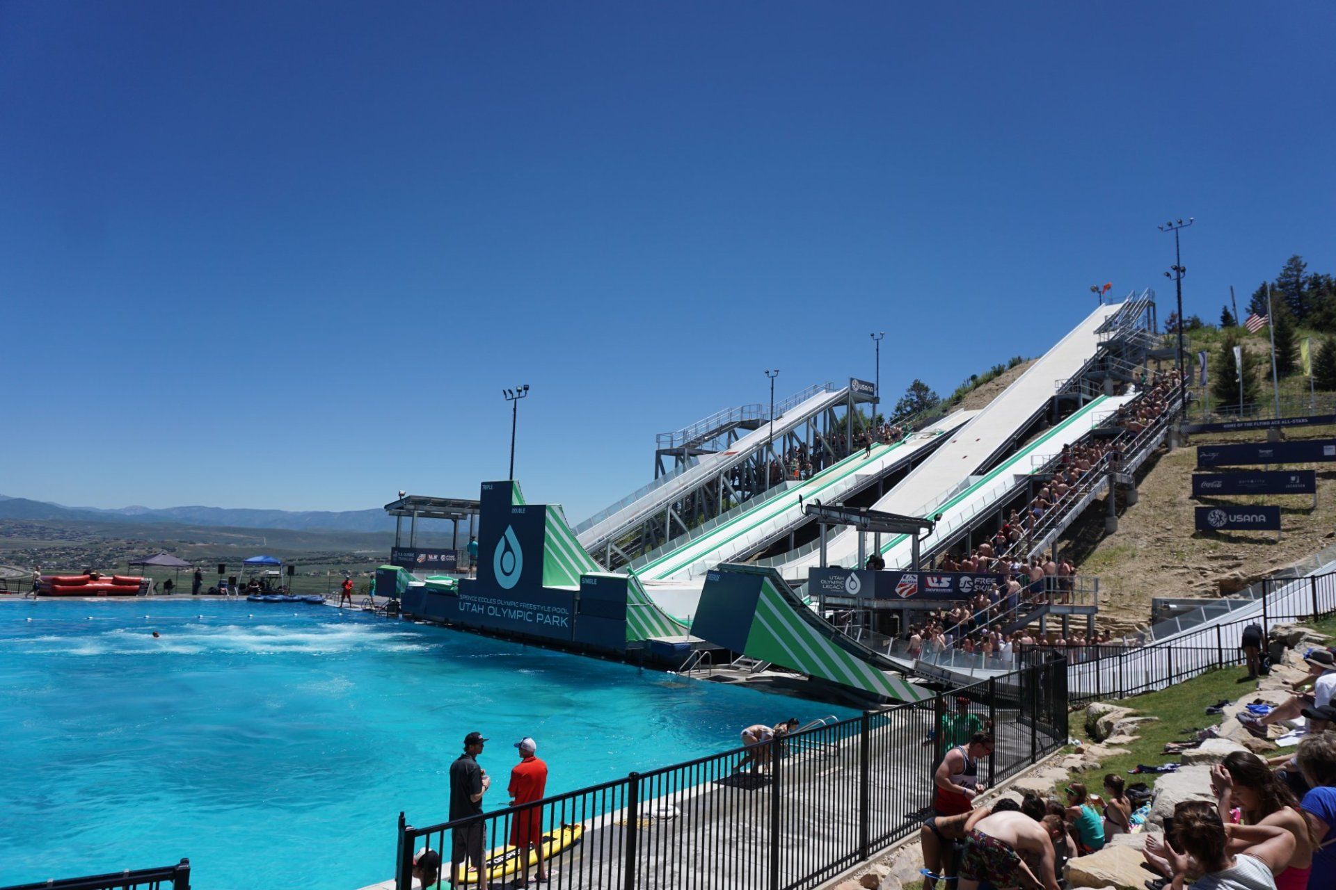 Ob an kleinen Seen in der Nähe von Städten oder an künstlich gebauten Pools - Wasserschanzen sind Mega In. Optimaler Trainingscenter für alpine Freestyler. Neben Skifahrer oder Boarder, können die Schanzen auch für Biker, Skateboarder oder rasante Fahrten mit Tubing Reifen konstruiert werden. Wir sind weltweit führender Lieferant von Gleitmatten für Mega Freestyle-Wasserschanzen: bis auf ca. 35m Höhen, 37m Länge und ca. 80 km/h Anfahrtsgeschwindigkeit zum 60 Grad Kicker. Knapp 20 m Lufthöhe wird erreicht. Wir liefern die Watertrax