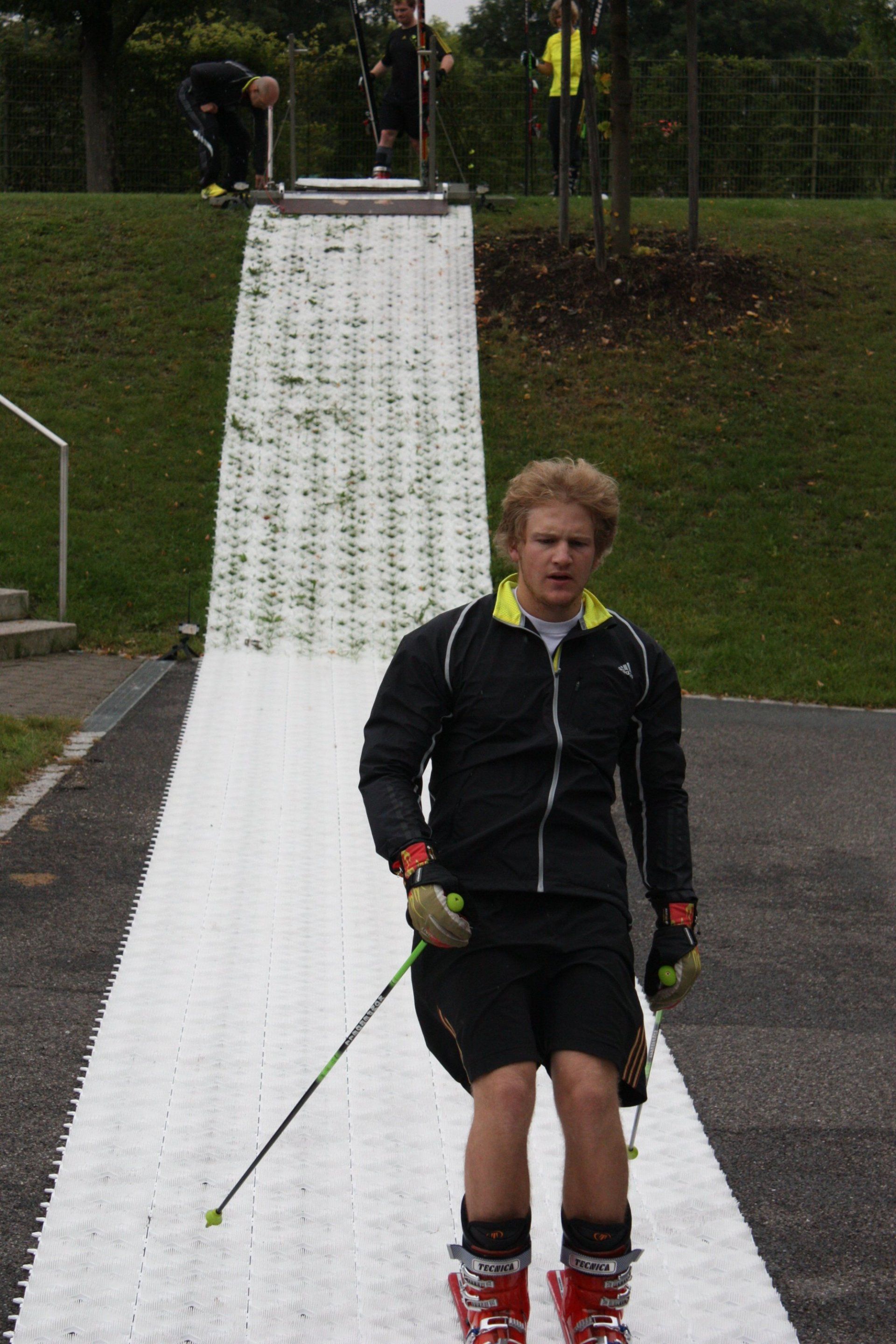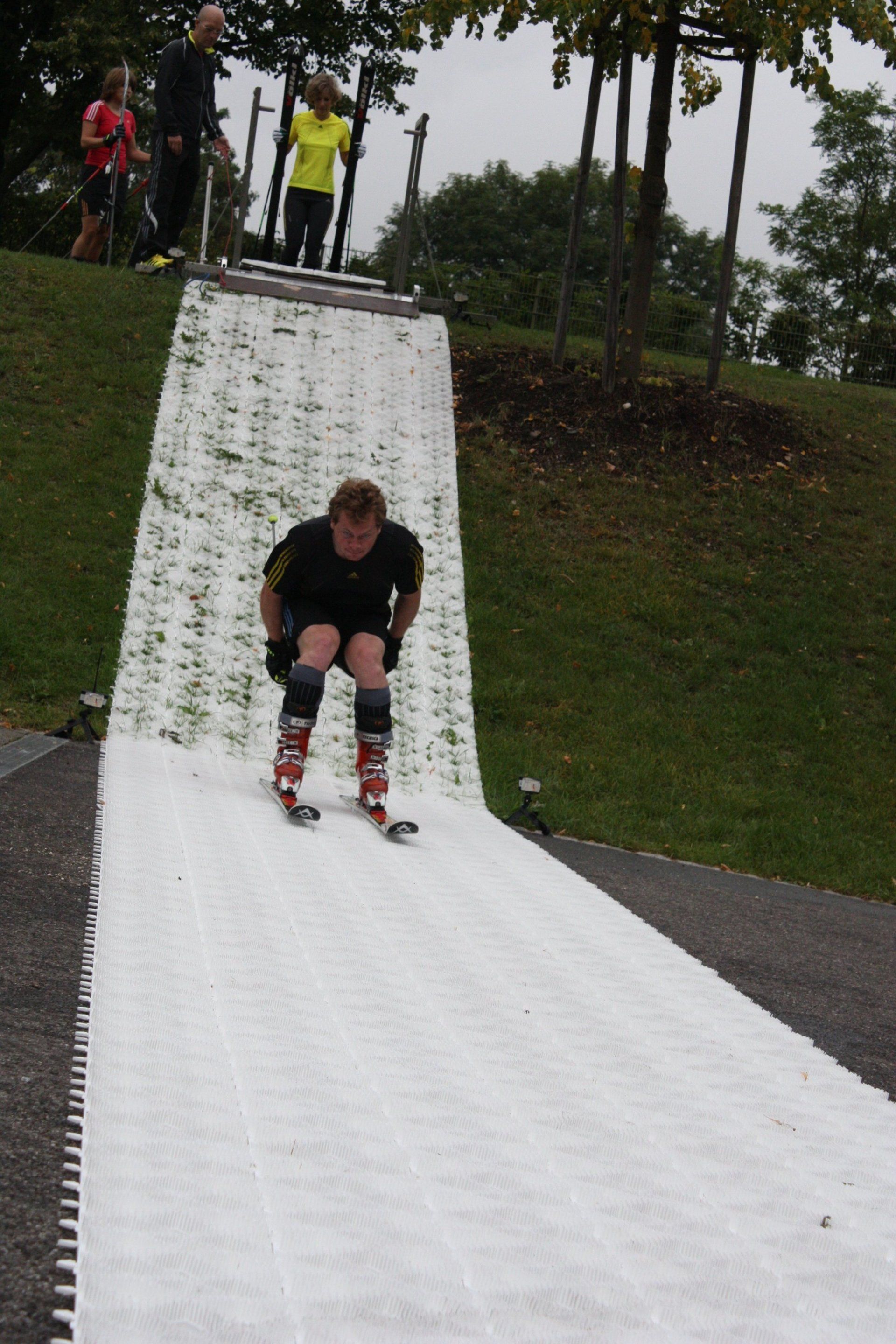 Next summer, plans call for a larger and longer synthetic track with lift at the DSV training center. But then with the fast new development "SKITRAX 2010": almost as fast as on real snow! Skitrax - always where snow is missing!