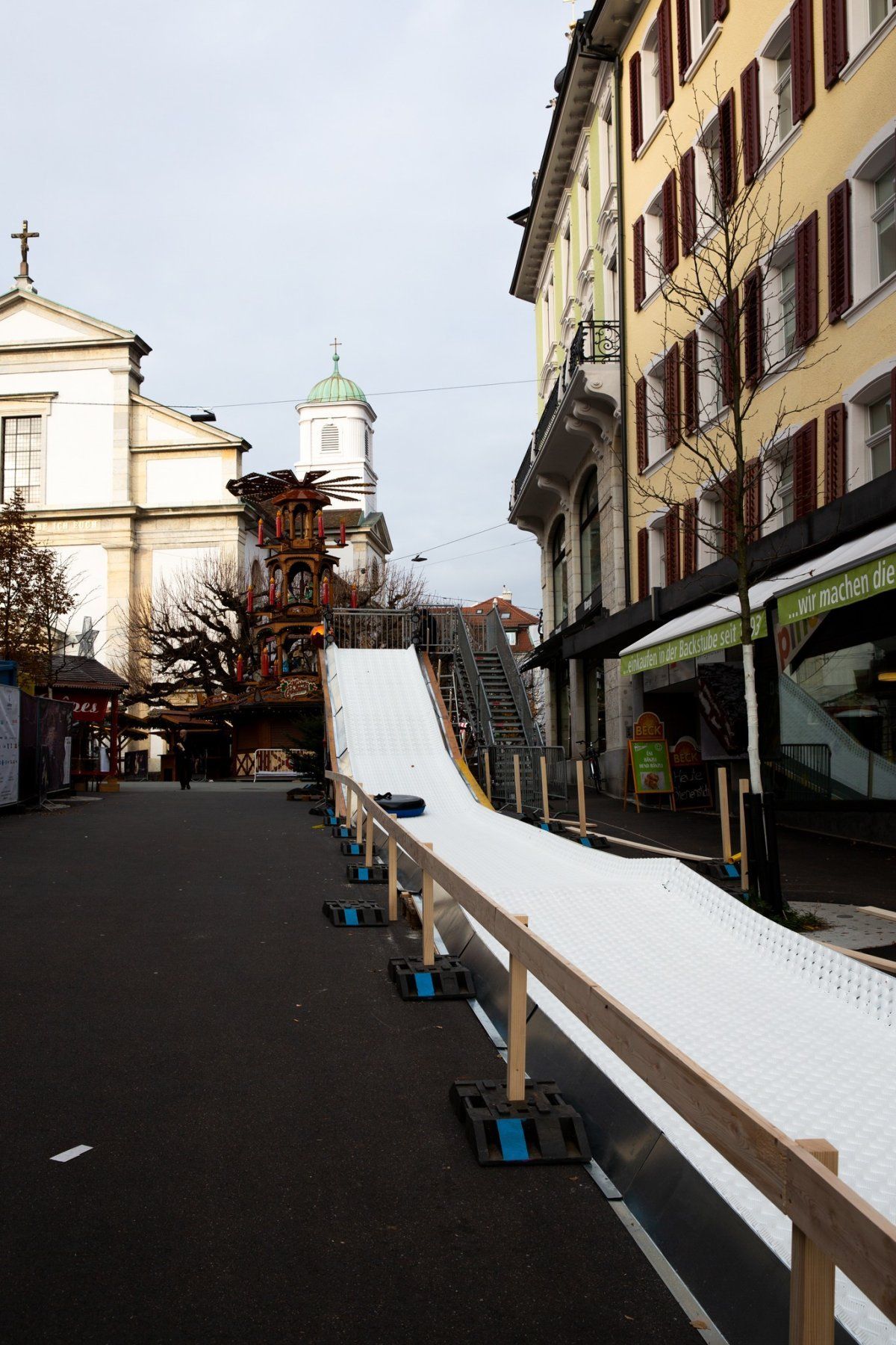 At the traditional Christmas market in the Swiss town of Olten (canton of Solothurn), a 30m long tubing track was installed on a 4m staffage for the first time. Skitrax World supplied the necessary number of Tubtrax-M1 modules, Tubtrax gliding mats and Epic tubing tires.